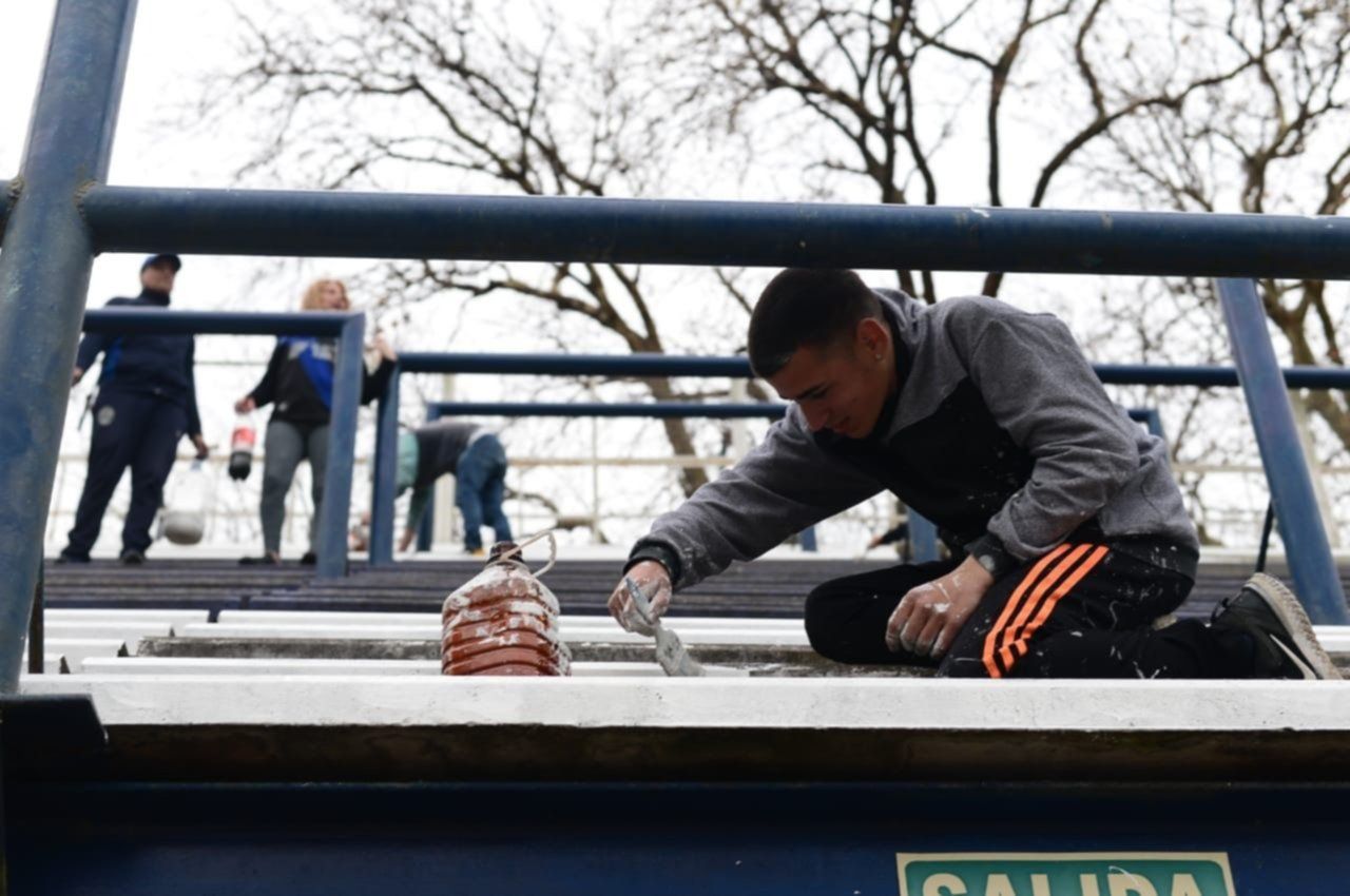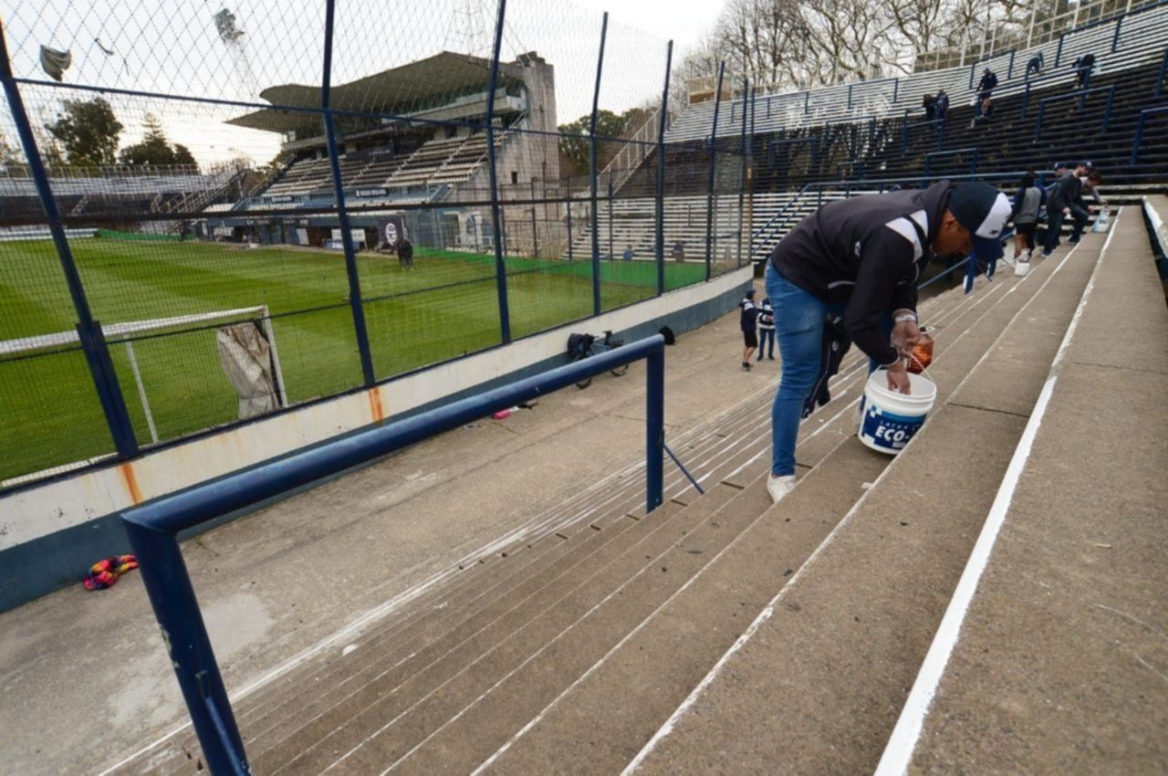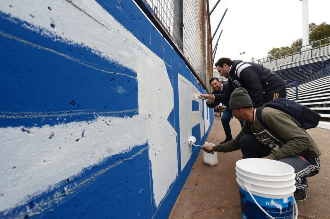 Decenas de personas colaboran por estas horas en el estadio tripero, pintando gradas y paredes para recibir al Diez de la mejor manera y hacerlo sentir como en casa.