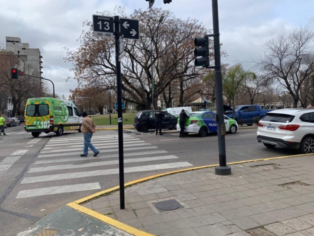 Este sábado por la tarde una ambulancia del SAME trasladaba a un paciente en clave roja y terminó chocando con un automóvil Chevrolet Meriva, en la esquina de avenida 13 y calle 39.