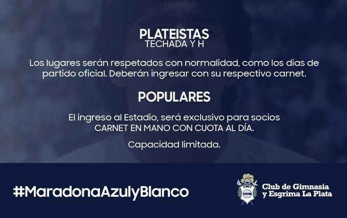 Mediante un comunicado, el club expresó: "Para aquellos que tengan su abono para la platea techada y la H, los lugares serán respetados con normalidad, como los días de partido oficial. Los hinchas deberán ingresar con su respectivo carnet. Para las populares, el ingreso será exclusivo para socios, quienes deberán concurrir con el carnet y la cuota al día".