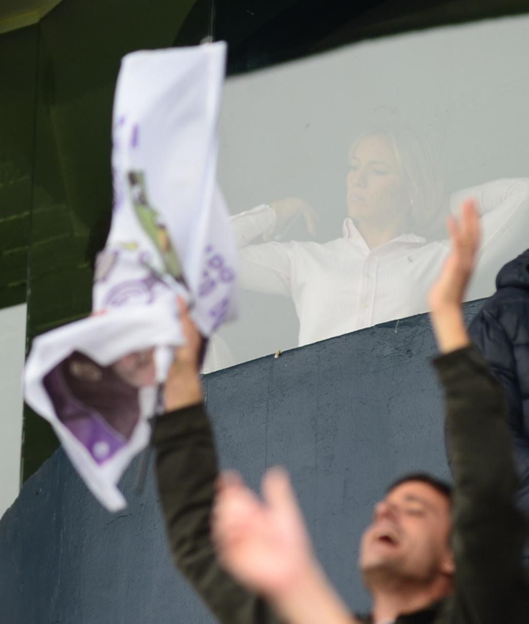 La pareja del Diego vivió la presentación del Diez desde uno de los palcos que tiene el estadio tripero y también se la pudo ver junto a dirigentes mens sanas, con los cuales de ahora en más comenzará a trabajar.