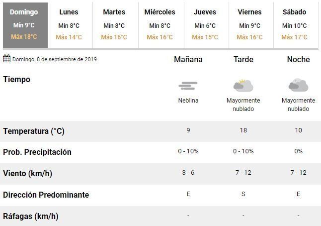 Según indicaron, además, no se prevé la llegada de lluvias a la ciudad, al menos, hasta la mañana del próximo lunes. La jornada, mientras tanto, transcurrirá nublada y con una gran humedad relativa.
