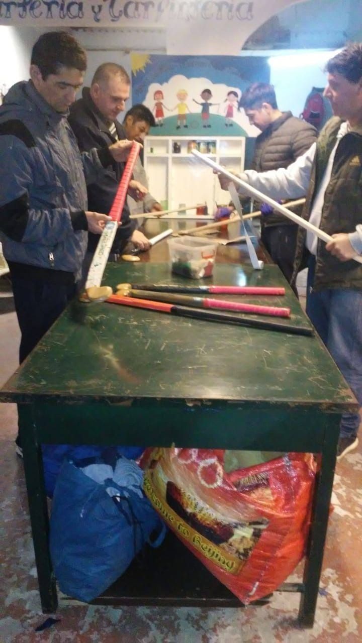 Gustavo, uno de los internos que participó del proyecto, comentó: “La idea surgió con uno de nuestros compañeros que sabía hacer los palos de hockey y junto con la fundación de Puentes Solidarios, que nos dio una mano con los materiales, lo pudimos llevar a cabo para empezar a entregar con la idea de fomentar el deporte, la buena educación, el jugar en equipo y el compartir”.