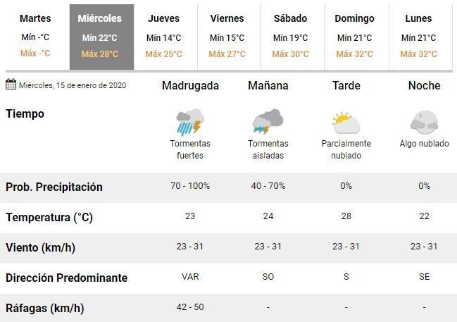 Los especialistas del Servicio Meteorológico Nacional (SMN), en tanto, indicaron que no se esperan precipitaciones para lo que resta del día, pero agregaron que podrían registrarse fuertes tormentas en la madrugada de este miércoles.