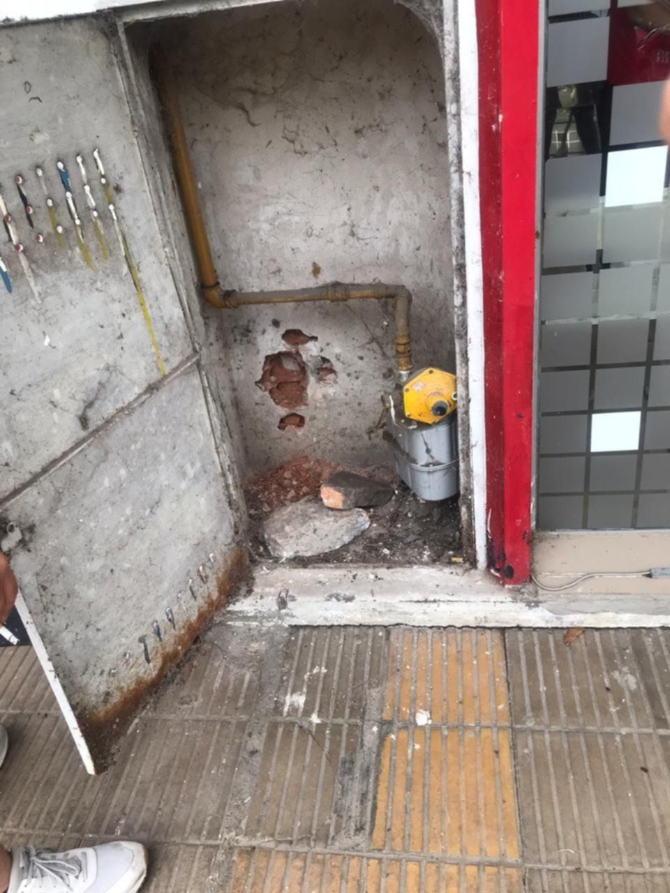 Para ello, intentaron pasar desapercibidos simulando arreglar una bicicleta frente al local para luego intentar meterse cuando nadie los viera. Más allá de sus intenciones, las posibilidades de ingresar eran nulas ya que el gabinete está cerrado entre paredes.