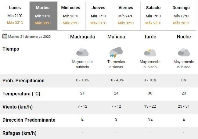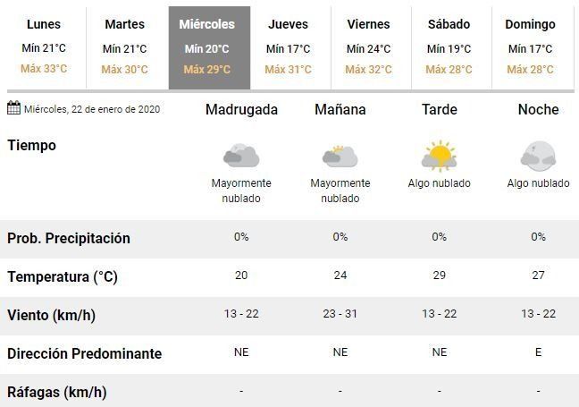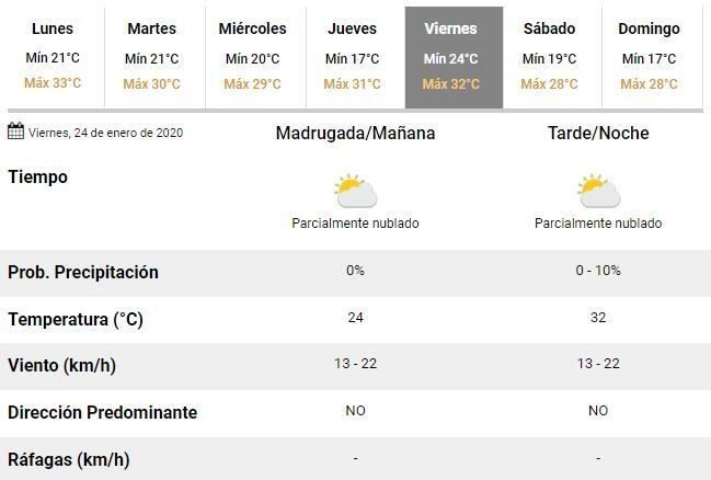 A partir del miércoles, por su parte, los especialistas del organismo anticiparon buenas condiciones climáticas, aunque con algo de nubosidad y altas temperaturas, que rondarán entre 17 y 32°C.