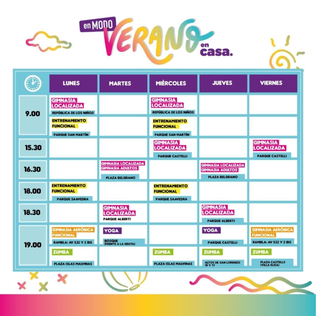 Según se informó, la iniciativa coordinada por la secretaría de Desarrollo Comunitario local y la dirección de Deportes del Municipio se realiza todo los años, pero este verano fue relanzada con la incorporación nuevos lugares y horarios. Todas las clases son sin cargo ni inscripción previa y están a cargo de profesores de educación física especialmente preparados para coordinar los ejercicios.