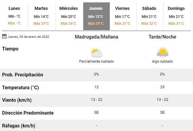 Los expertos indicaron que el tiempo mejorará hacia los próximos jueves y viernes. Para el primero se esperan solo algunas nubes y una máxima de hasta 29°C, mientras que para el segundo se aguarda por una jornada de sol y poca nubosidad, con una máxima de 31°C.