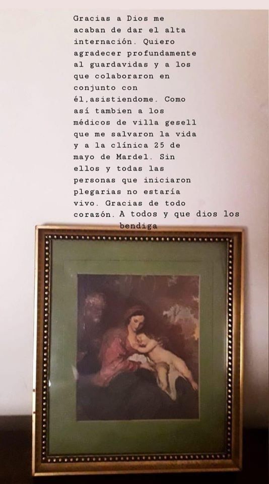 En las últimas horas, Franco fue dado de alta y escribió un emotivo mensaje en las redes para agradecer a todos los que lo ayudaron. "Gracias a Dios me acaban de dar el alta internación. Quiero agradecer profundamente al guardavidas y a los que colaboraron en conjunto con él, asistiéndome. Como así también a los médicos de Villa Gesell que me salvaron la vida y a la clínica 25 de Mayo de Mardel", expresó.