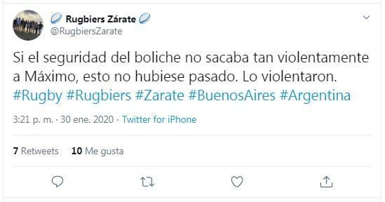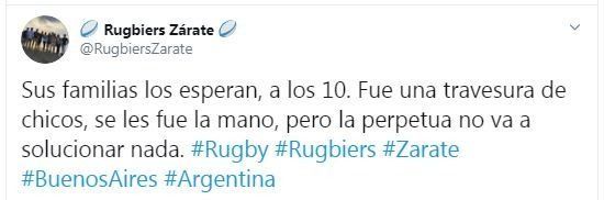 Aunque todavía no está claro si la cuenta fue creada verdaderamente para defender a los diez jóvenes presos en Dolores o solo busca despertar polémica, lo cierto es que la cuenta despertó un fuerte revuelo en las redes sociales. "Son pibes con sueños, ganas de divertirse, vivir una vida, tener amigos, estudiar", puede leerse en la descripción del usuario @RugbiersZarate.