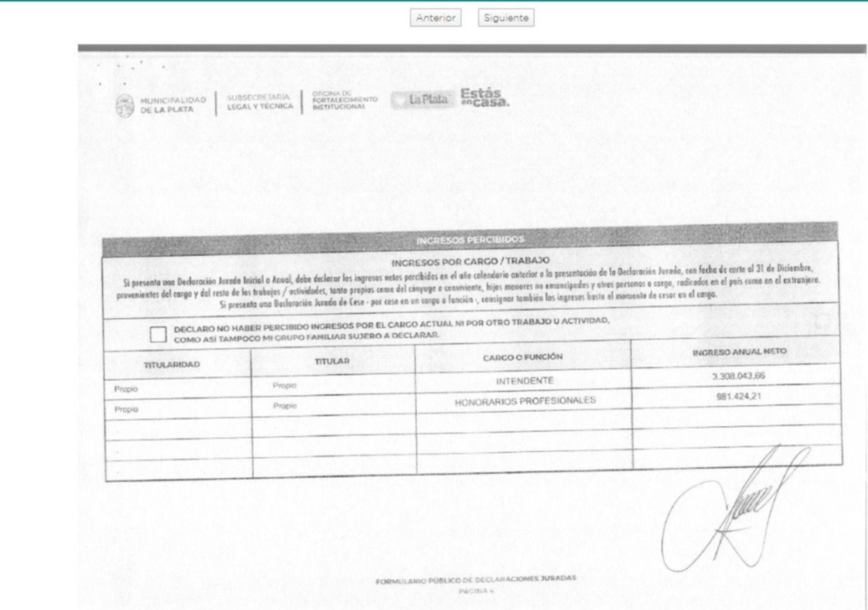 En tanto, el secretario de Economía Horacio Prada declaró ingresos y propiedades inmuebles por $1.259.672. Todas estas declaraciones se corresponden al año 2018, fueron presentadas en 2019 y se publican recién ahora, en el marco de la Ley 15.000 de la provincia de Buenos Aires que regula el sistema de Declaraciones Juradas patrimoniales de los funcionarios y agentes del sector público.