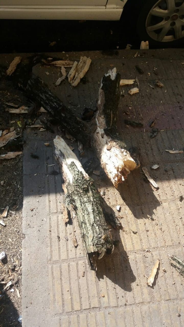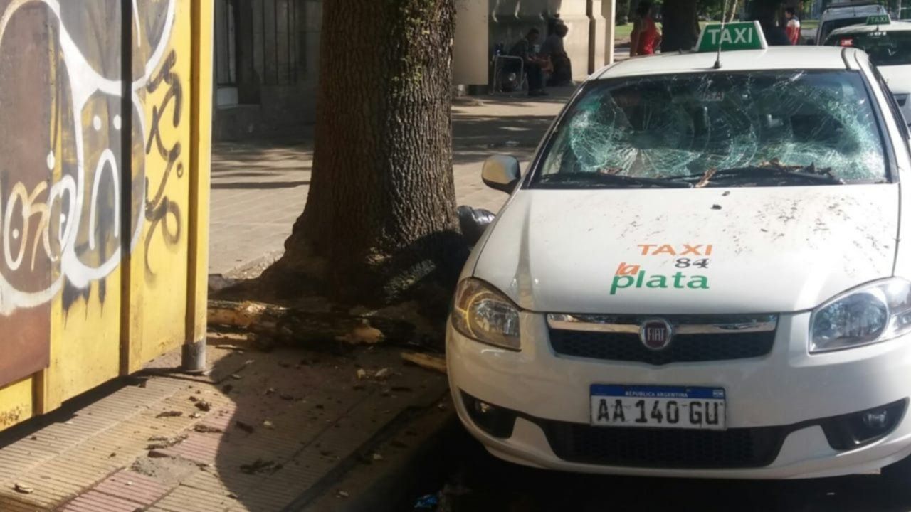Todavía conmocionado por lo sucedido, pero a la vez alegre porque no hubo que lamentar una tragedia, el taxista detalló que la rama "cayó de una altura de unos diez metros, estaba todo podrido". "Escuché la explosión y menos mal que tenía los anteojos sino perdía la vista porque el estallido hizo volar astillas del parabrisas para todos lados", señaló.