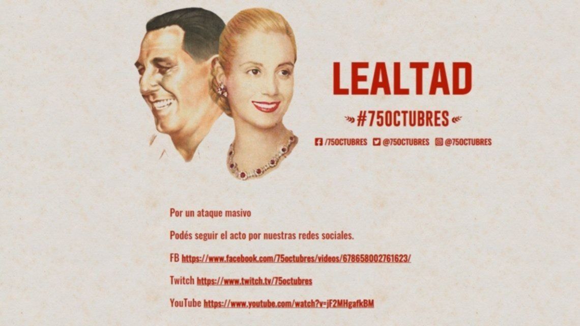 En medio de múltiples actividades programadas para este 17 de octubre, el acto oficial estaba pensado que se realice a través de dicha página. Sin embargo el ingreso a la misma se hizo imposible para los que querían participar y los organizadores denuncian que se trata de un “ataque masivo”.