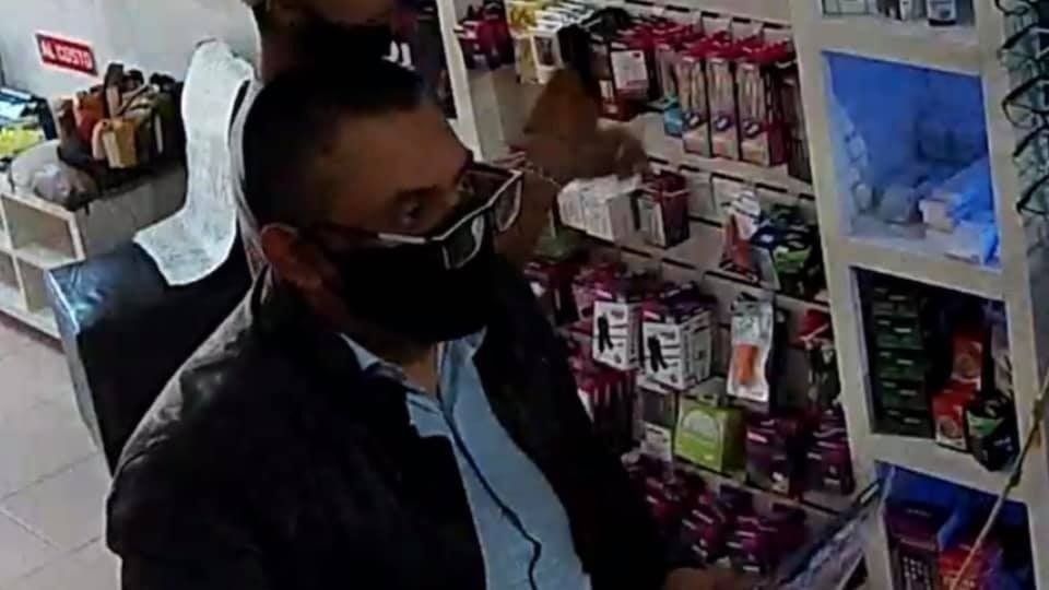 Las imágenes muestran a uno de los implicados merodeando por el lugar, apoderándose de distintos productos como si fuera un cliente común y corriente, mientras su cómplice distrae a la empleada.