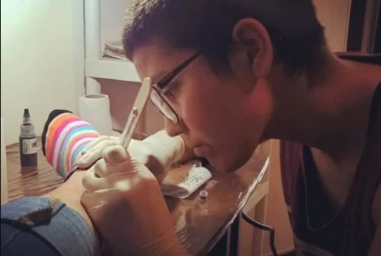 Trabaja como tatuador de manera independiente y hace dos años consideró que era el momento de realizarse una doble masectomía. "Después de haber atravesado un montón de miedos, me dije: ‘Esto es lo que quiero para mi cuerpo’”, aseguró a Todes Nosotres. Y remarcó: “No hay cuerpos equivocados, pero yo no reconozco mi pecho como propio”.
