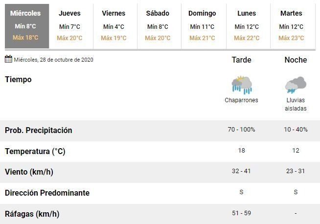 Tras algunos chaparrones durante el mediodía de este miércoles, los especialistas anticiparon que las malas condiciones climáticas persistirán durante las próximas horas y advirtieron que el clima seguirá "ventoso con ráfagas".