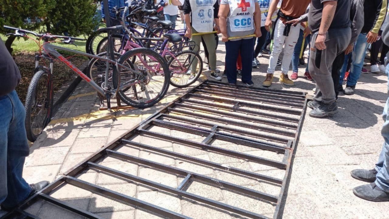 Según la denuncia, en el lugar el propio Director de Seguridad del Municipio, Cristian López, fue agredido por los manifestantes, "quienes tiraron abajo la reja del portón de ingreso al Palacio".