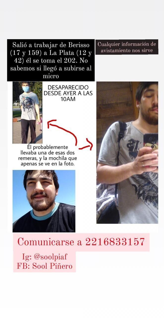 Quienes tengan datos para aportar tienen que comunicarse al 2216833157 o al 911.