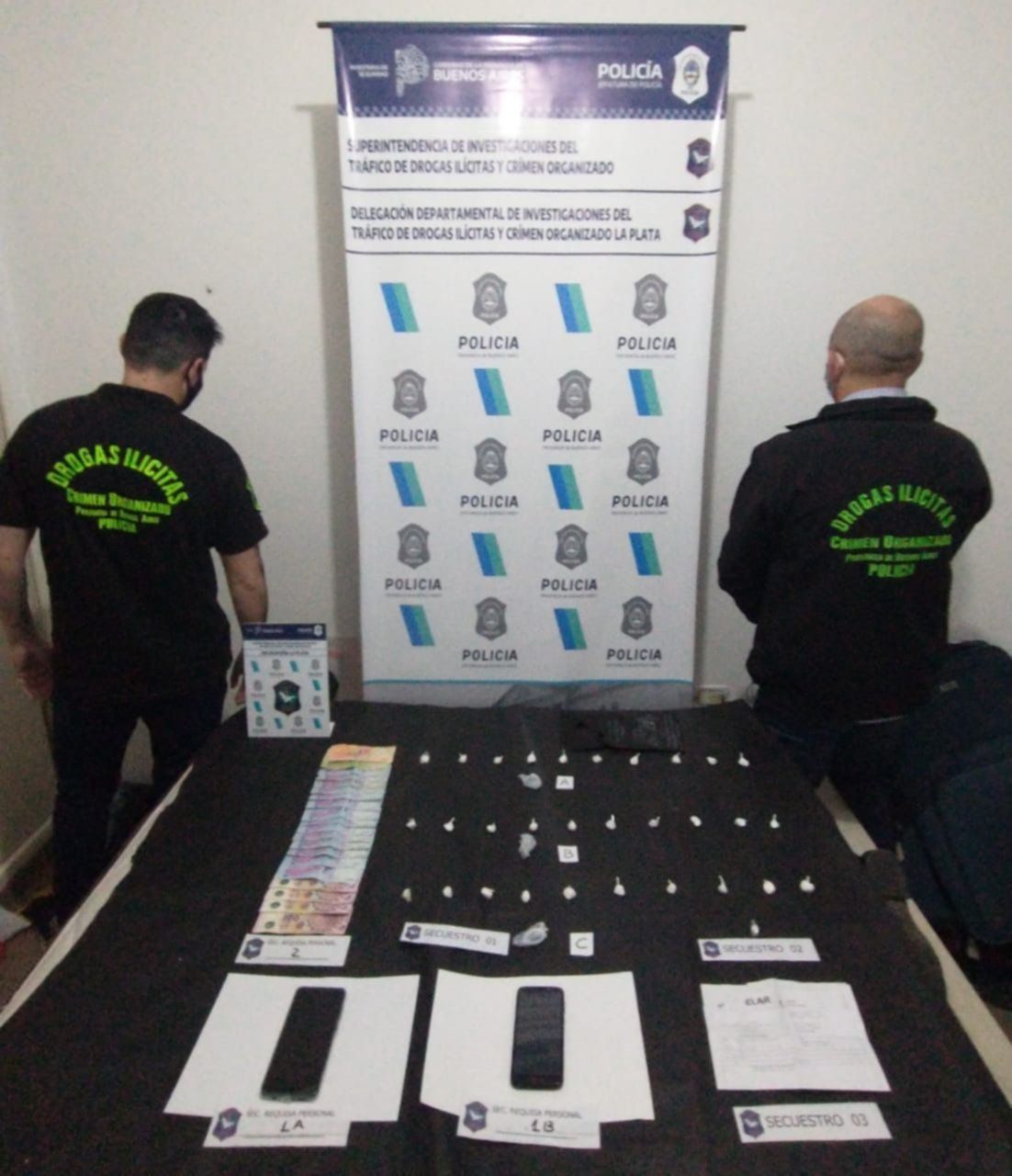 La causa, caratulada como "infracción a la Ley 23.737", quedó en poder de la Unidad Funcional de Instrucción N° 18 -a cargo del fiscal Hugo Tesón- y el Juzgado de Garantías N° 5 -de la doctora Marcela Garmendia-, ambos del Departamento Judicial de La Plata.