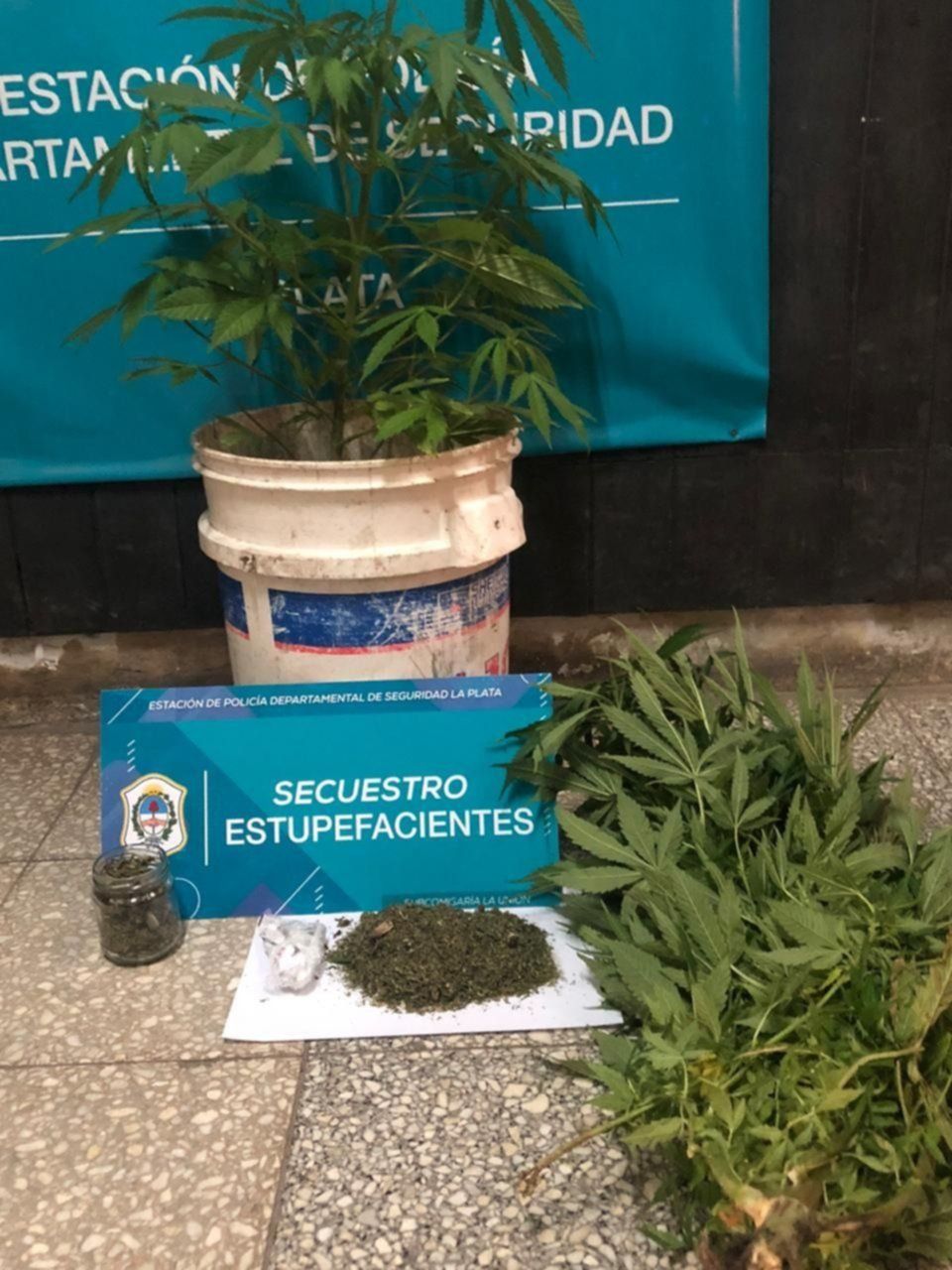 En su domicilio, los efectivos incautaron una planta de marihuana, frascos y latas con la misma sustancia, lo cual arrojó un pesaje total de 645 gramos. La causa, en la que intervino la subcomisaria La Unión, quedó en poder de la UFI N°16 y la UFI N°18, ambas del Departamento Judicial de La Plata.