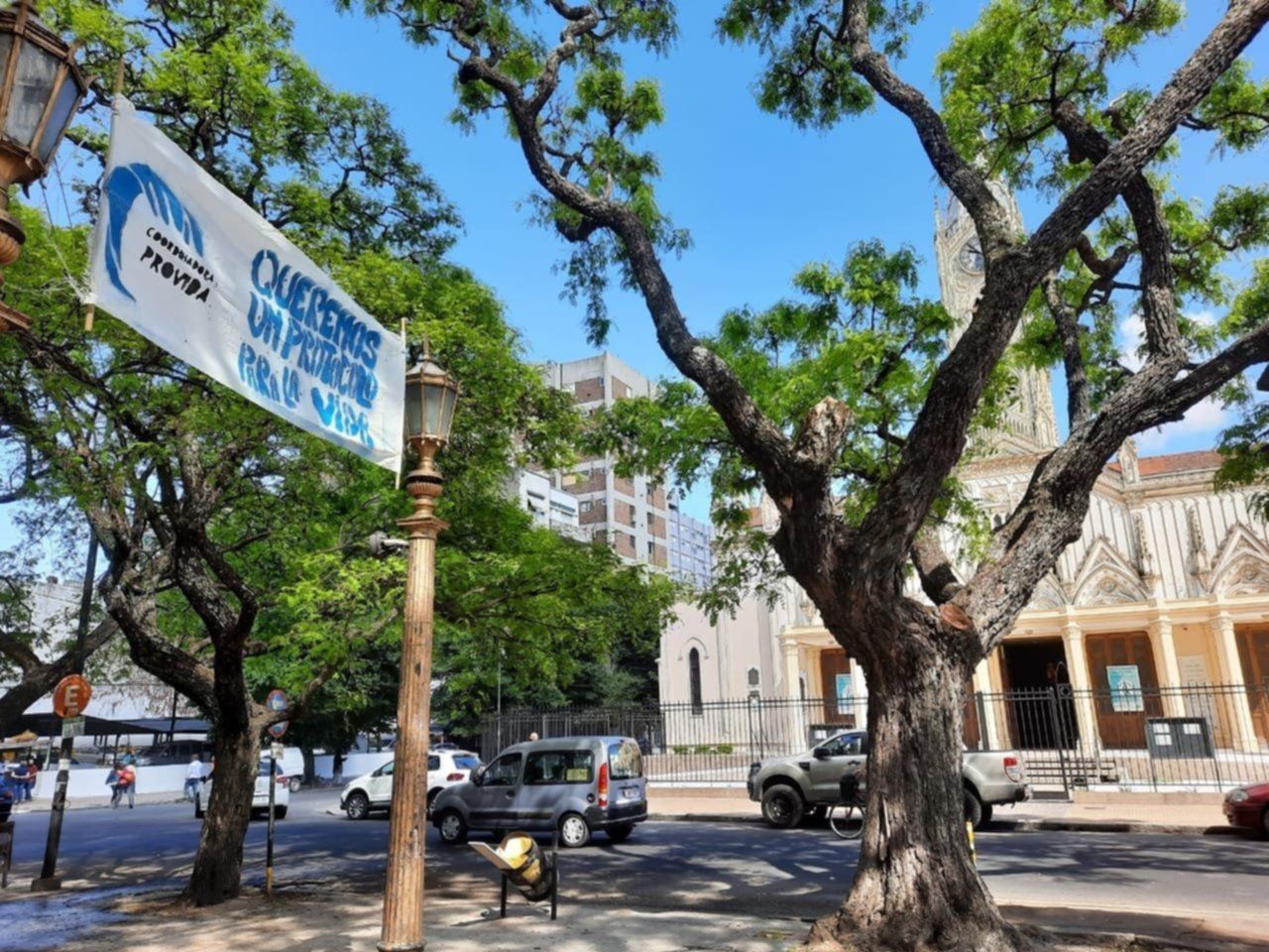 Los primeros fueron vistos en 48 y Diagonal 80, frente a la Basílica de San Ponciano. “Queremos un protocolo para la vida”, es la frase que lleva el pasacalle instalado en la plazoleta ubicada a metros del templo religioso.