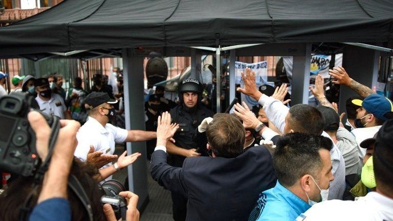 En la previa al inicio de la despedida de Diego Armando Maradona se vivieron momentos tensos. Luego de una vigilia de largas horas y filas multitudinarias, hubo empujones, corridas y botellazos a minutos del ingreso a Casa Rosada, donde se realiza el velorio popular del emblema de la Selección Argentina.