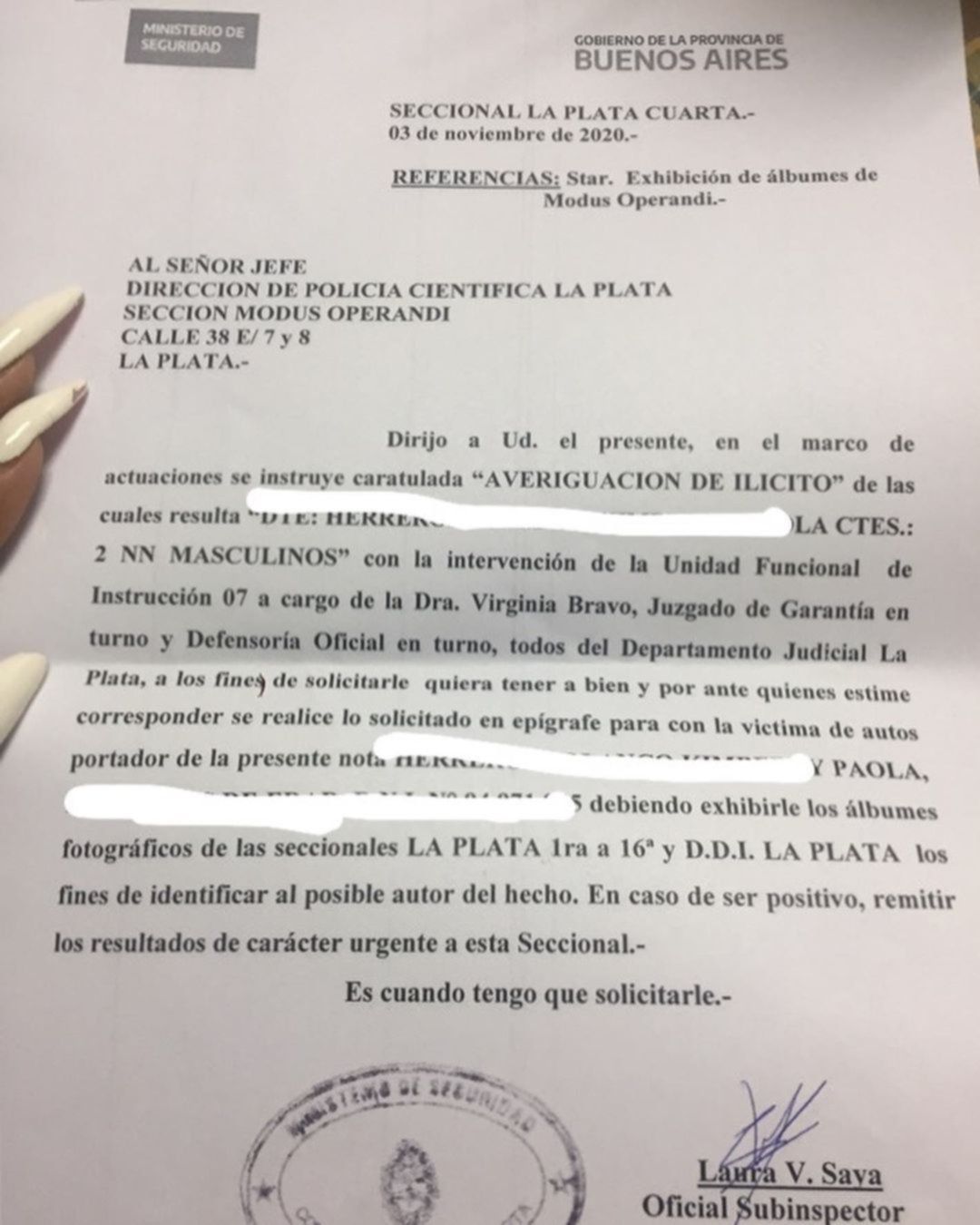 Inmediatamente después del hecho, la mujer decidió radicar la denuncia correspondiente en la Comisaría Cuarta de La Plata, aportando su testimonio sobre lo sucedido y la detallada descripción de los vehículos.