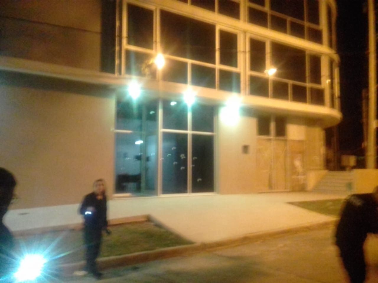 Según muestran las imágenes, los implicados se movilizaban en un rodado de color rojo, con el cual pasaron a baja velocidad por la puerta del edificio, y efectuaron al menos 15 detonaciones. Luego, se dieron inmediatamente a la fuga antes de ser descubiertos. Lo único que los testigos pudieron aportar es que ambos estaban encapuchados.