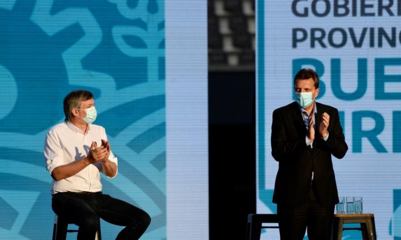 Después de otro balance de Sergio Massa, el gobernador Kicillof realizó cuatro anuncios, tres de los cuales los vinculó con "las claves del gobierno": "Representamos a las mayorías, a los sectores vulnerables: techo, comida y escuela, de lo que se ocupa el gobierno de la provincia de Buenos Aires. Venimos a resolverle los problemas a la gente", dijo.