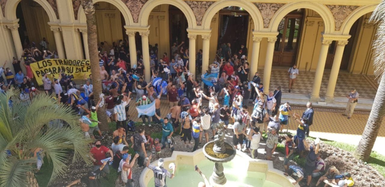 Ahora, el extitular de la Agencia de Prevención de Violencia en el Deporte (Aprevide), Juan Manuel Lugones, presentó una denuncia que recayó en el Juzgado Nacional en lo Criminal y Correccional Federal N° 9 y solicitó que se investigue si hubo una zona liberada en el ingreso de los barras a la sede gubernamental. En ese sentido, habló de la llegada de "siete micros que se trasladaron desde la provincia de Buenos Aires en perfecta coordinación para acompañar el ingreso de la vicepresidenta (Cristina Kirchner) a la despedida de Maradona".
