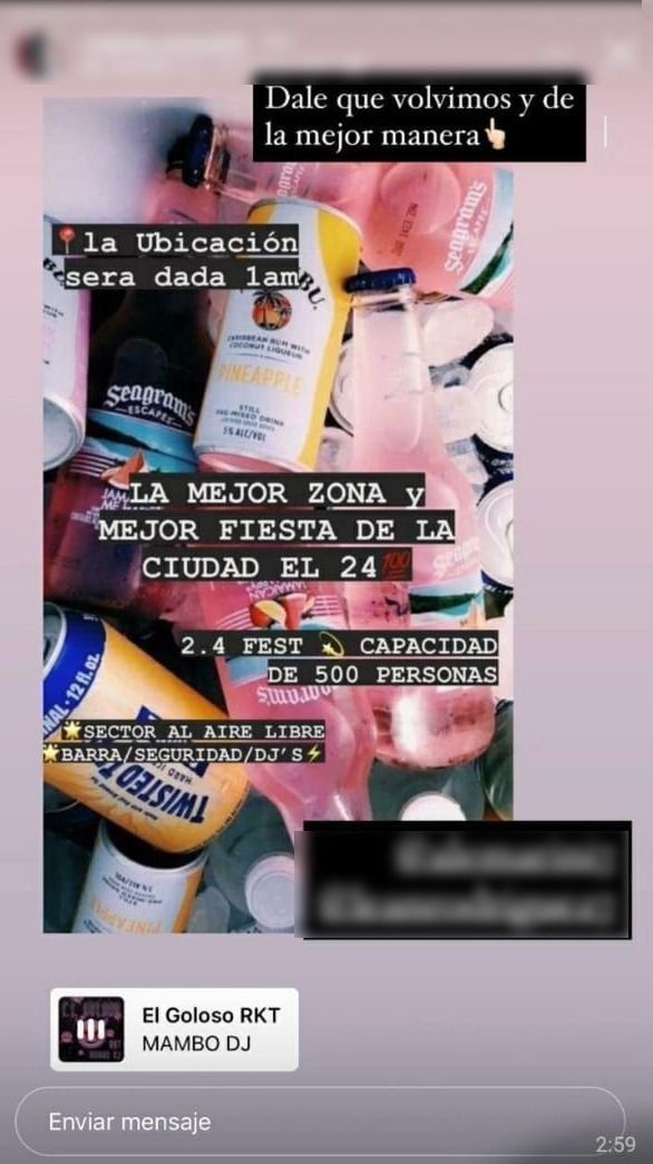Incluso convocaban a otra fiesta en el barrio náutico, en Berisso, con "capacidad limitada". También circularon convocatorias en Villa Garibaldi, y otras que advertían que quedaban "los últimos 150 lugares".