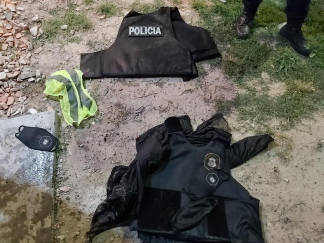 El auto siguió por calle 29, que corta contra el Arroyo El Gato. Los delincuentes bajaron del vehículo y continuaron con la lluvia de balas en medio de su fuga. Tres de ellos lograron saltar el paredón de contención del arroyo y huyeron, mientras que el cuarto cayó herido por un disparo en la pierna izquierda. Una vez reducido, los oficiales vieron que tiene un chaleco antibalas de la Policía Bonaerense. A pocos metros estaba su arma y en el interior del Renault encontraron un barbijo con el escudo policial, según se reconstruyó judicialmente.
