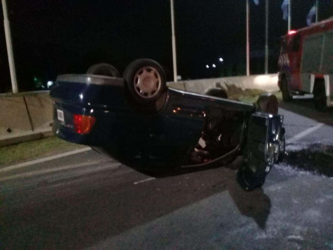 El siniestro ocurrió a última hora de este sábado en la subida de la autovía de Diagonal 74 y 122. Según contó un testigo a 0221.com.ar, el Volkswagen Polo colisionó contra el separador de carriles y finalizó dado vuelta.