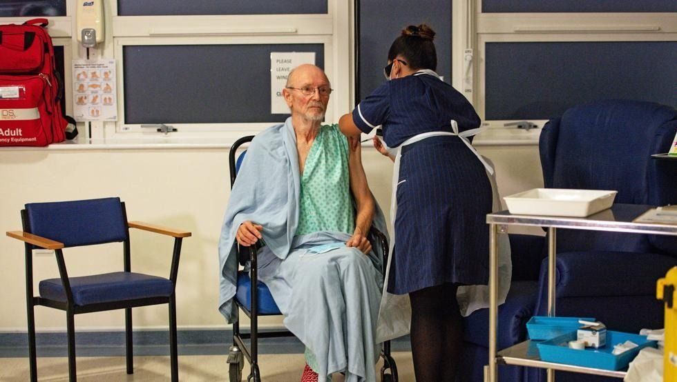 La primera inyección fue recibida por Margaret Keenan, una británica que cumple 91 años la semana próxima, en un hospital de Coventry, en el centro de Inglaterra, en la fase inicial de un vasto programa de vacunación y en el que que ha sido bautizado "Día V".