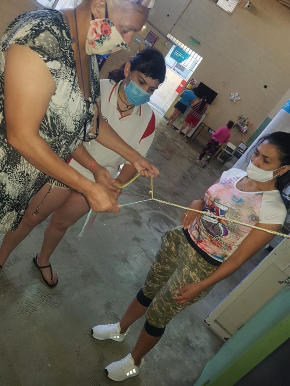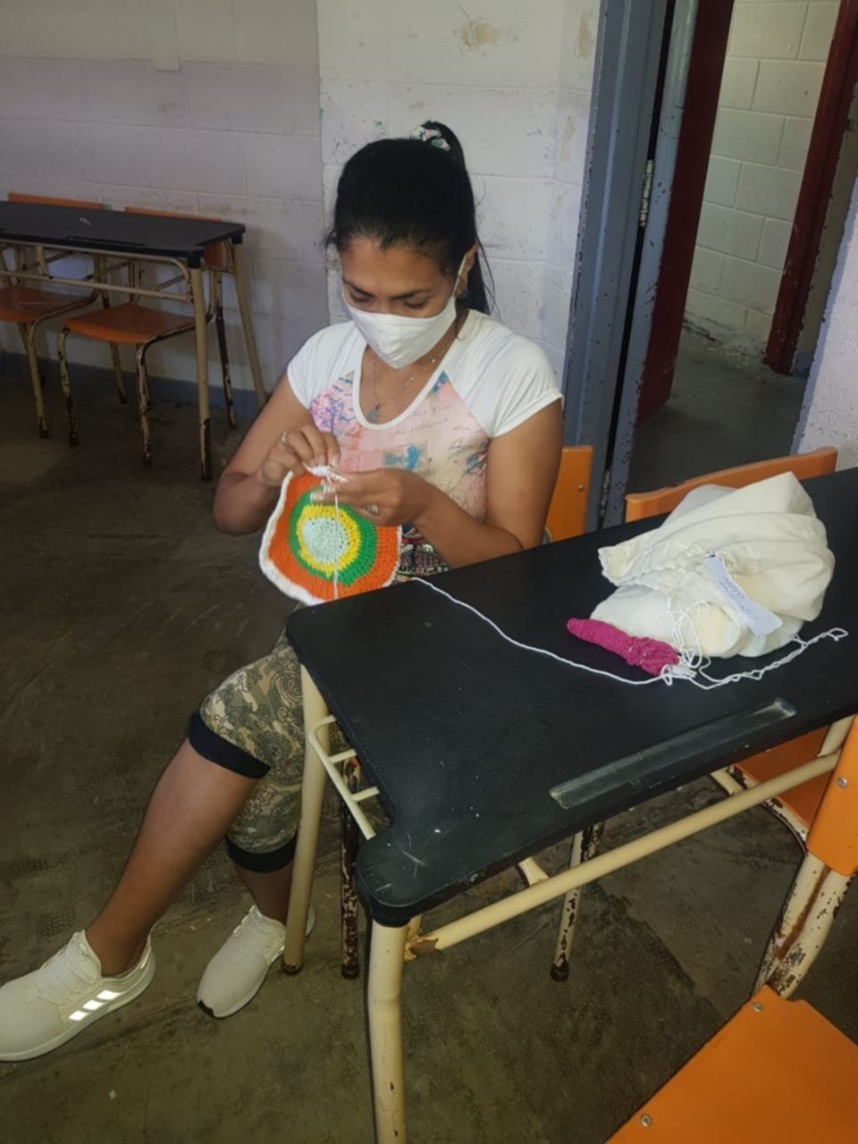 La docente del curso, Yeimmy, contó que aprendió a tejer en su país de origen y reveló: “Nunca pensé enseñar y ahora que tengo la oportunidad de hacerlo, me gusta mucho. Realmente, me agrada que con mi conocimiento se haya podido lograr esta producción”.