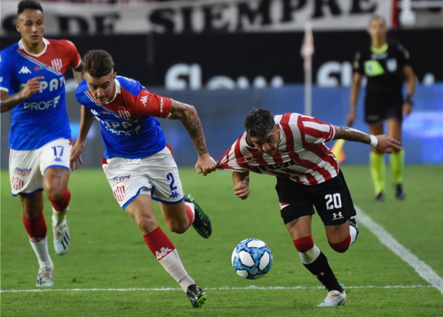 Tras varios minutos de pocas aproximaciones, ambos conjuntos tuvieron buenas chances a partir de disparos de afuera del área. Estudiantes tuvo una con un tiro de Nahuel Estévez que Sebastián Moyano supo contener y Unión tuvo la suya con un remate de Federico Milo que Mariano Andújar desvió al córner.