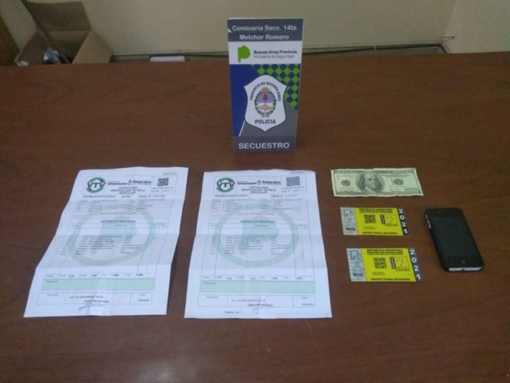No es lo único que el detenido tenía en su poder. Además de dos obleas de VTV y dos certificados de obleas, las cuales se presumen son apócrifos, también tenía 100 dólares falsos y una picana eléctrica que simula ser un teléfono celular tipo iPhone.