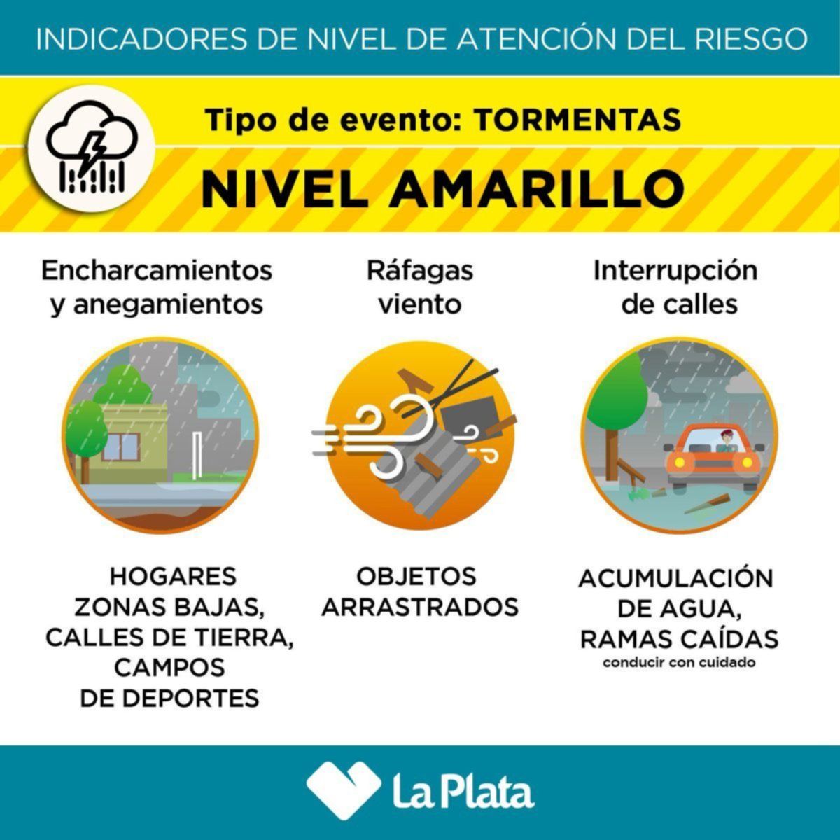 Las autoridades municipales destacaron que "durante la tarde aumentará gradualmente la chance de tormentas sobre La Plata, no descartándose que alguna sea de fuerte intensidad, con ráfagas de viento de 60 a 80 kilómetros por hora y ocasional caída de granizo".
