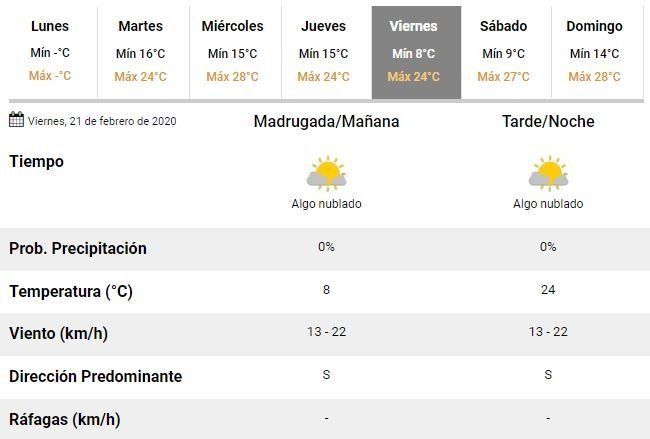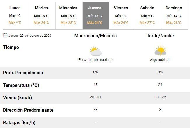 Aunque se prevé un martes con ventoso, los especialistas indicaron que la temperatura caerá hasta una mínima de 16°C y una máxima de 24°C. El viento soplará con fuerza desde el sudoeste y en esa línea advirtieron que podrían registrarse algunas ráfagas de hasta 59 kilómetros por hora.