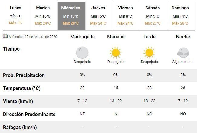 En líneas generales, además, se aguardan buenas condiciones de tiempo, fundamentalmente durante el próximo miércoles, con un cielo totalmente despejado y vientos moderados soplando desde el norte.