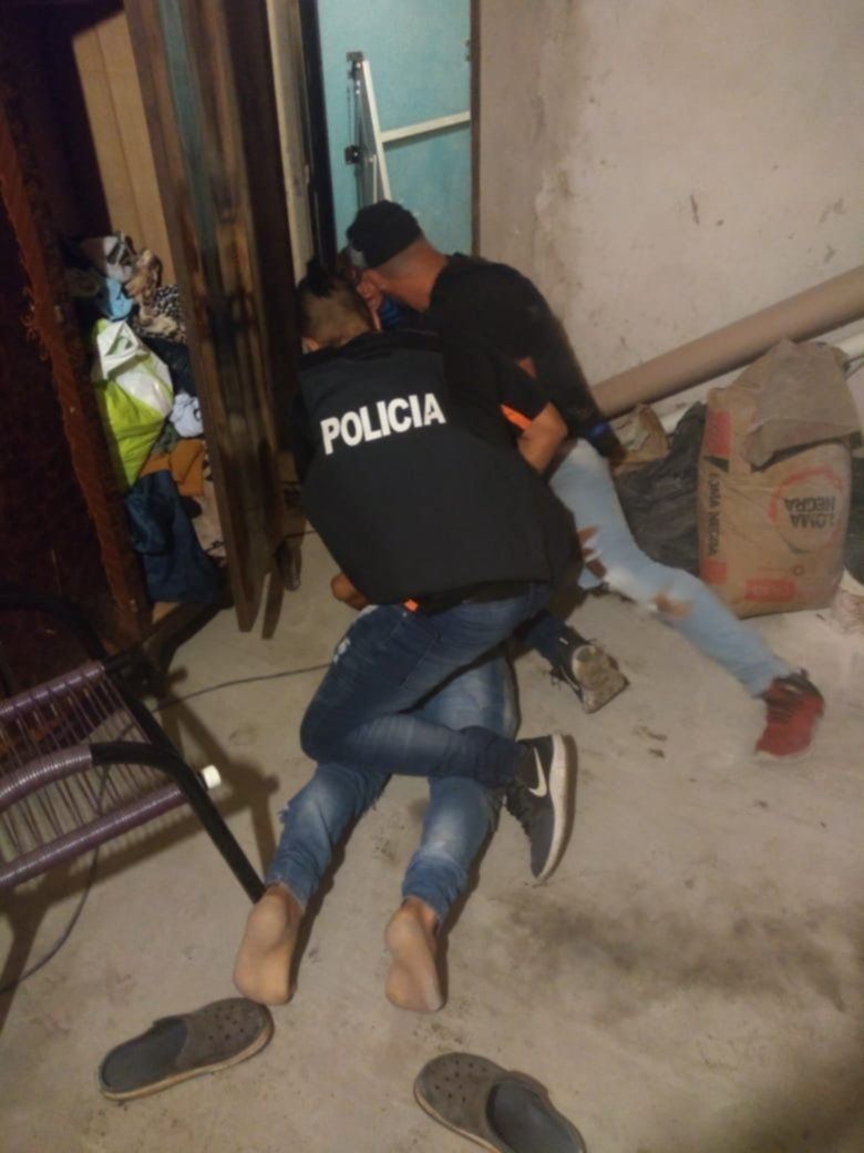 Al notar la presencia policial, intentó darse a la fuga por un terreno baldío descartando las armas pero finalmente fue interceptado. Las autoridades lo trasladaron a la seccional por el delito de "tentativa de homicidio, abuso de arma y robo calificado", secuestrando también un Chevrolet Meriva de importancia para la pesquisa.