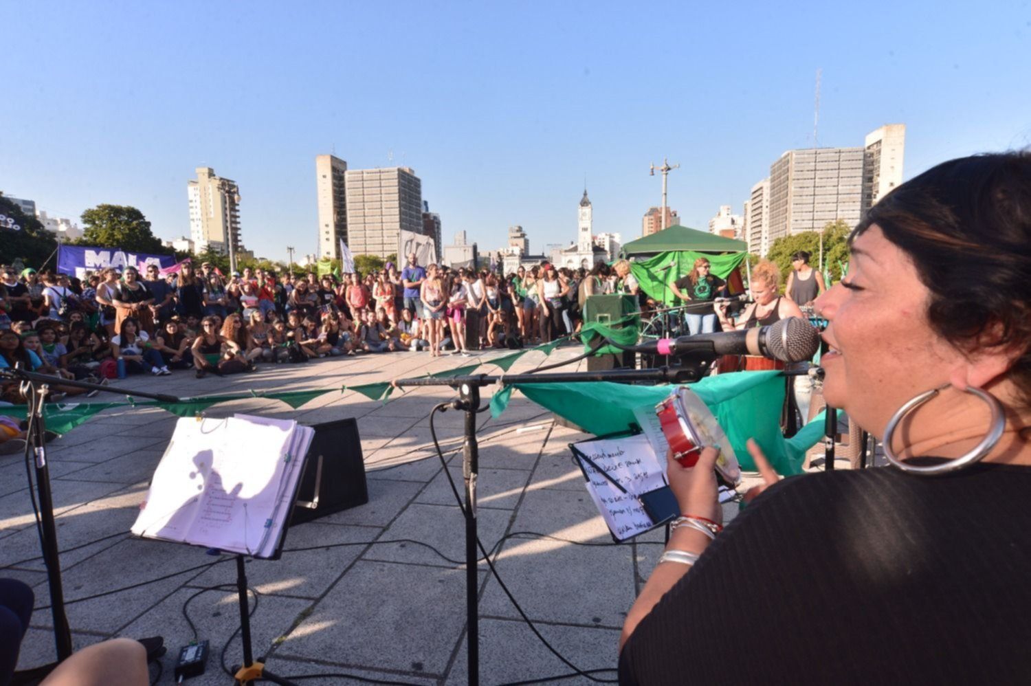 Plaza Moreno fue el punto de convergencia. Hubo artistas, talleres, intervenciones, se repintó el pañuelo sobre calle 14 y se culminó a las 19 con un pañuelo simultáneo en todo el país.
