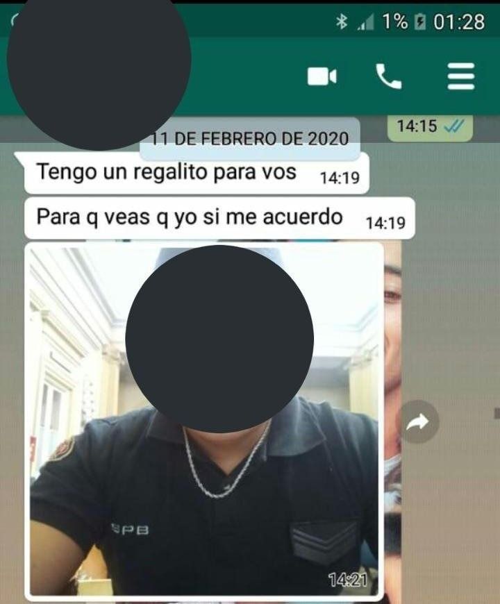 "Al tener el equipo bajo mi control empezaron a llegar mensajes subidos de tono y sugerentes. Luego vi que había audios e imágenes", contó a ese medio y a partir de esto decidió radicar una denuncia y presentar a la Justicia las capturas de pantalla, los audios y las fotos que el agente del SPB le enviaba a su hija.