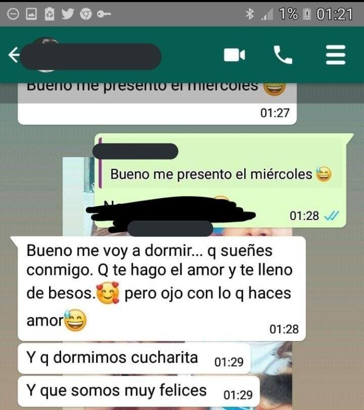 "Bueno, me voy a dormir… que sueñes conmigo, que te hago el amor y te lleno de besos", se puede leer en otro de los fragmentos que fueron difundidos y despertaron la alarma de la mujer, quien rápidamente denunció el caso y realizó capturas para que los mensajes no puedan ser eliminados.