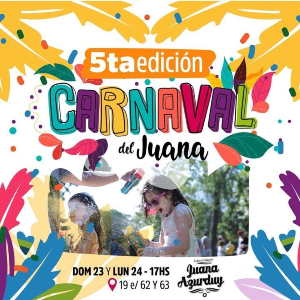 La histórica fiesta barrial que invita a salir a la calle y disfrutar del carnaval. Murgas: La Recalcada Murga, Murga Conventillo Nacional y La ReTirada. Batucadas: Bomani-batucada de los pibes de "Plaza los Robles" Barrio Aeropuerto-, Bloco Das Pibas. Candombe Chicaracum. Bandas en vivo con Puertas y La Bestia Folk. Juegos de agua y espuma: La kombi - Juegoteca Viajera. Concurso de Disfraces para niñes