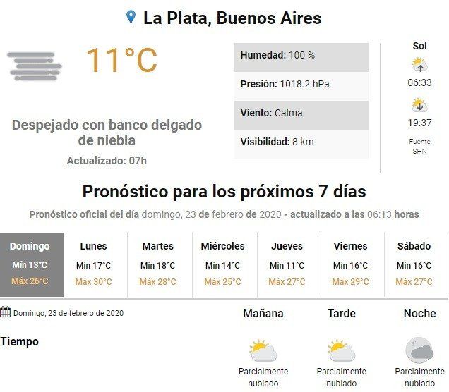 En medio de un fin de semana XXL, los platenses podrán disfrutar un domingo con buen tiempo. Según el Servicio Meteorológico Nacional, tendremos una jornada con cielo despejado por la mañana y con algo de nubes por la tarde, aunque sin probabilidades de precipitaciones.