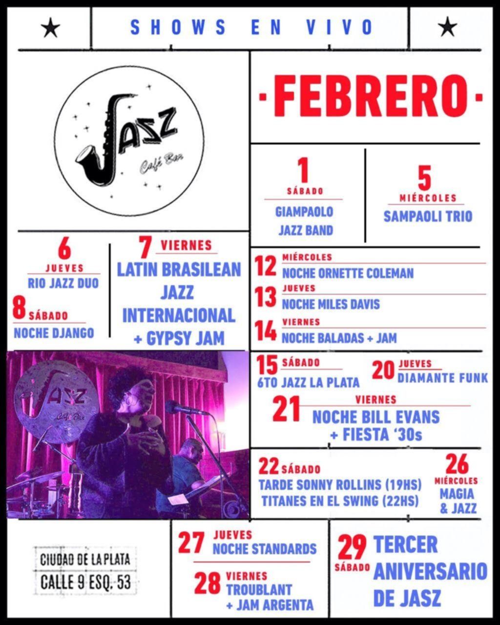 Sábado. Noche aniversario Jazz: El bar se prepara para celebrar sus tres años de historia, a la medianoche. Desde las 21hs nos acompañará la música del pianista italiano Mario Toscano invitando a cualquier músico/a al escenario para compartir jazz y participar de esta noche especial. Más tarde, tendremos el privilegio de recibir a CUIQUE SUUM, un clásico de la casa con Valeria Paolino en voz, Alberto Battimo en piano y Pablo Mendillo en batería. Esta vez con un repertorio de Swing para que junto a la escuela de baile “Swing Out Studio La Plata” y a los personajes de otras artes en la barra, más la gente nueva bienvenida, festejemos en armonía una fiesta jazzera.