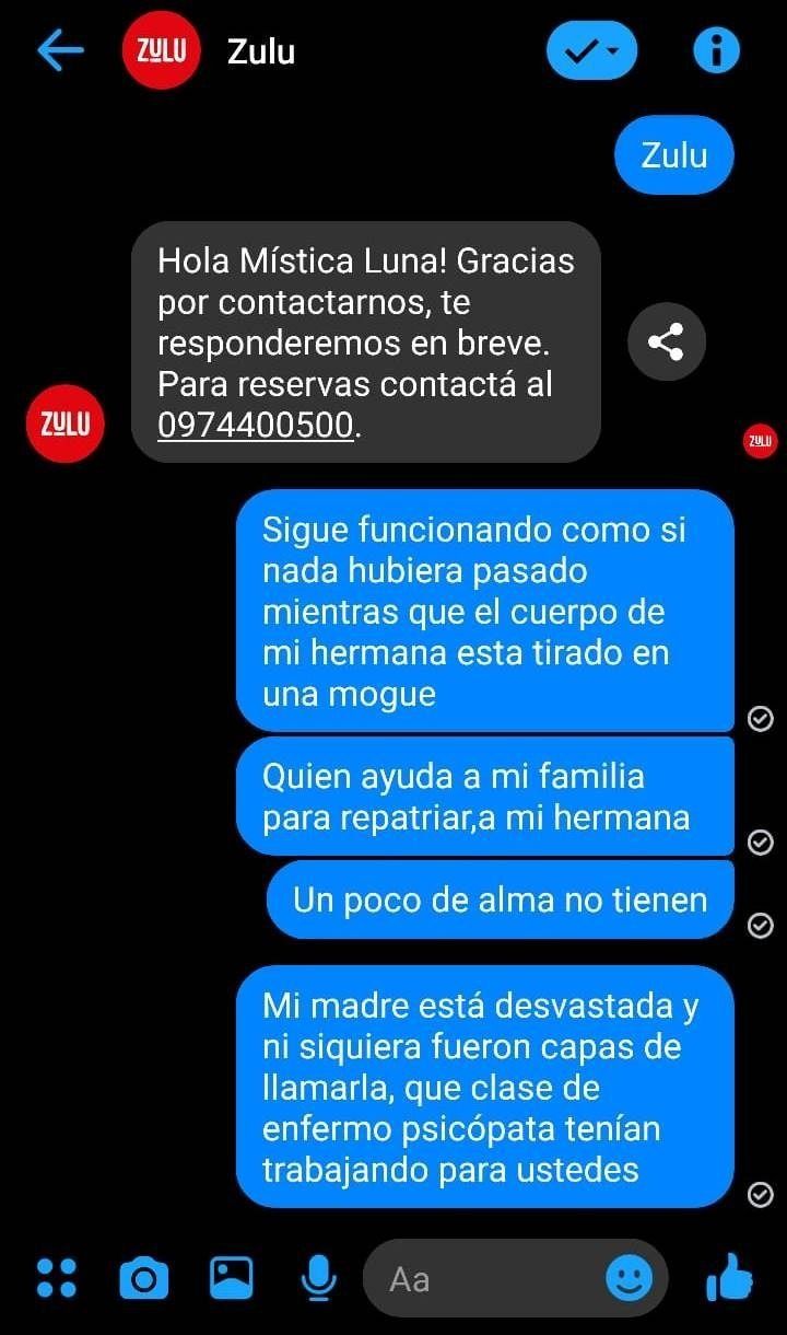 En medio del dolor, la joven le escribió a los propietarios del restaurante en el que trabajaba su hermana y apenas obtuvo una respuesta automática a sus desesperados reclamos.