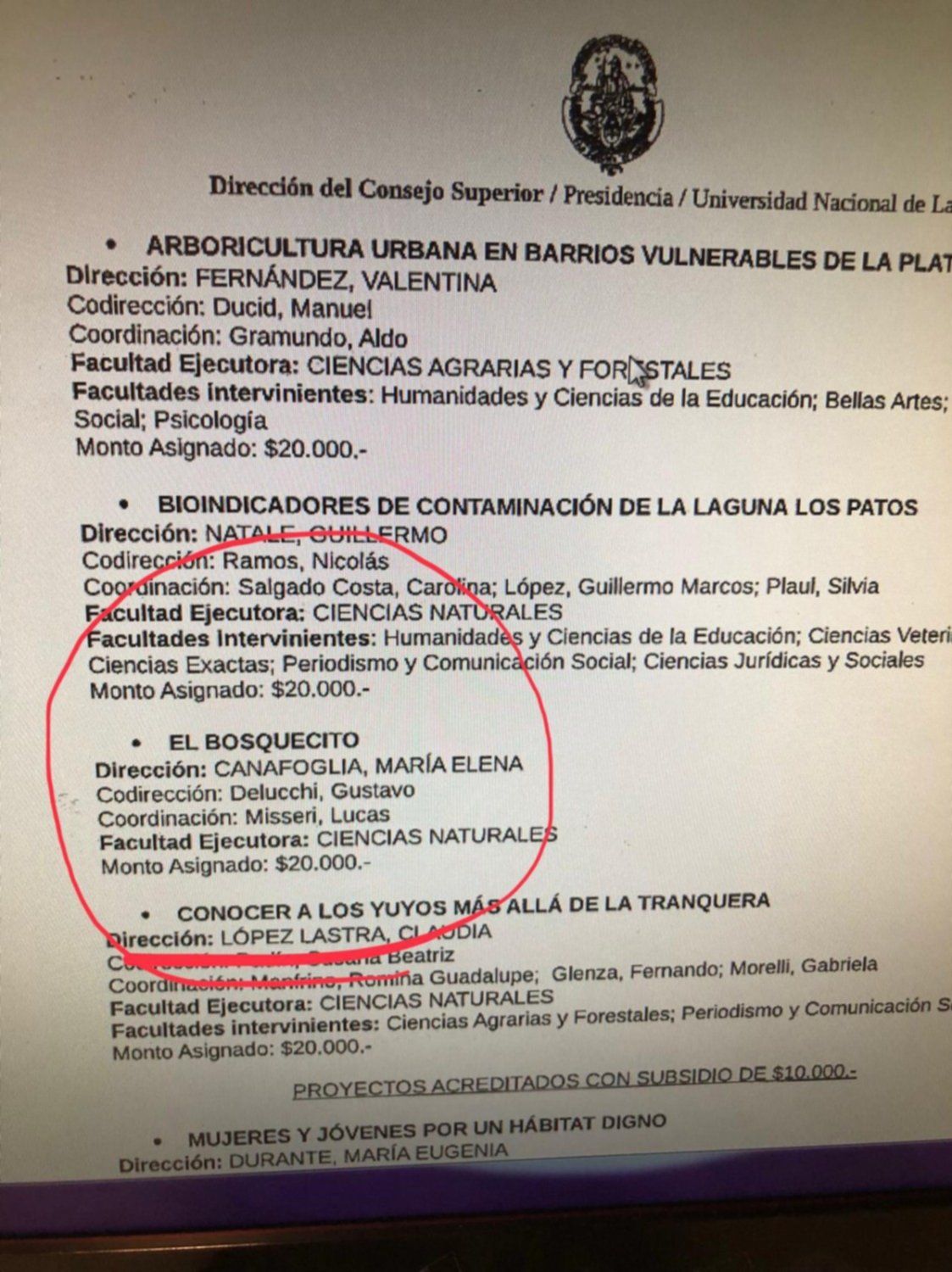 La difusión de lo ocurrido alertó a los funcionarios de la UNLP que en medio de un fuerte debate interno decidieron retirar su apoyo. El representante de Fasacal considera que “eso demuestra se trató de una suerte de estafa en la que las autoridades universitarias fueron burladas”.