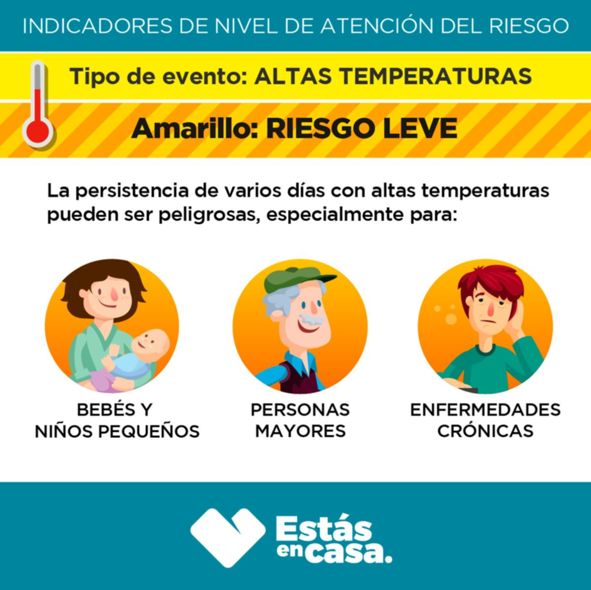 Por las altas temperaturas, la Municipalidad le informó a los vecinos que continúa el Nivel de Atención del Riesgo "Amarillo" y reiteró las recomendaciones para evitar golpes de calor. Las autoridades pidieron un cuidado especial para proteger a niños, adultos mayores, personas con enfermedades crónicas y lactantes.