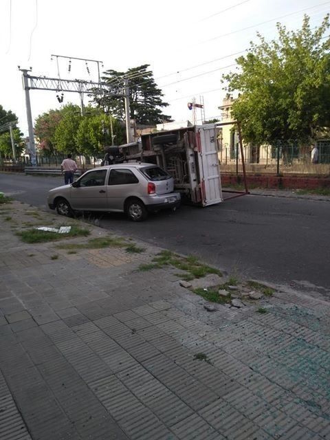 A pesar de lo impactante de las imágenes, afortunadamente el conductor del vehículo de mayor porte no sufrió heridas de gravedad. Los daños materiales, en tanto, no son menores: el camión quedó completamente de lado, volcado y complicando la circulación el tránsito; mientras que el otro automóvil sufrió serias roturas en las partes trasera y derecha.